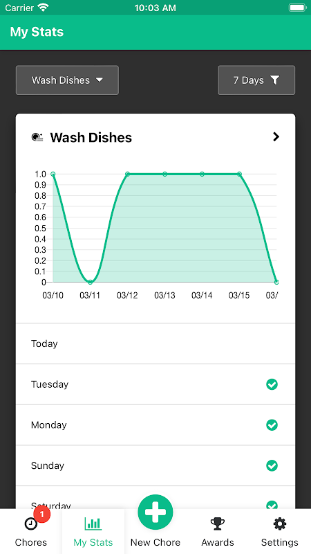 Chores Tracker आपके दैनिक कामों को चार्ट और ट्रैक करने का सही तरीका है और सुनिश्चित करता है कि वे पूरे हो गए हैं! इस ऐप के साथ, आप अपने सभी विशिष्ट कार्यों के साथ एक अनुकूलित कोर चार्ट बना सकते हैं, प्रत्येक काम को पूरा करने के लिए अनुस्मारक सेट कर सकते हैं, और समय के साथ अपनी प्रगति को ट्रैक कर सकते हैं।