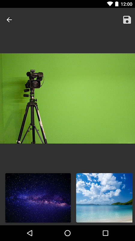 तस्वीर का लो या एक हरे रंग की स्क्रीन के साथ अपने गैलरी से एक को चुनें और क्रोमा प्रभाव का उपयोग कर एक कस्टम पृष्ठभूमि जोड़ें।