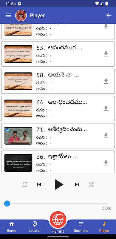 भजन, लोकेटर, उपदेश और ऑडियो प्लेयर के लिए ईसाई वैश्विक अनुप्रयोग