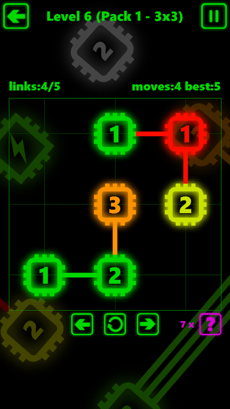 Connect all of the chips to create a circuit and complete each level. All chips must be linked together and each chip must have the required number of connections to other chips.