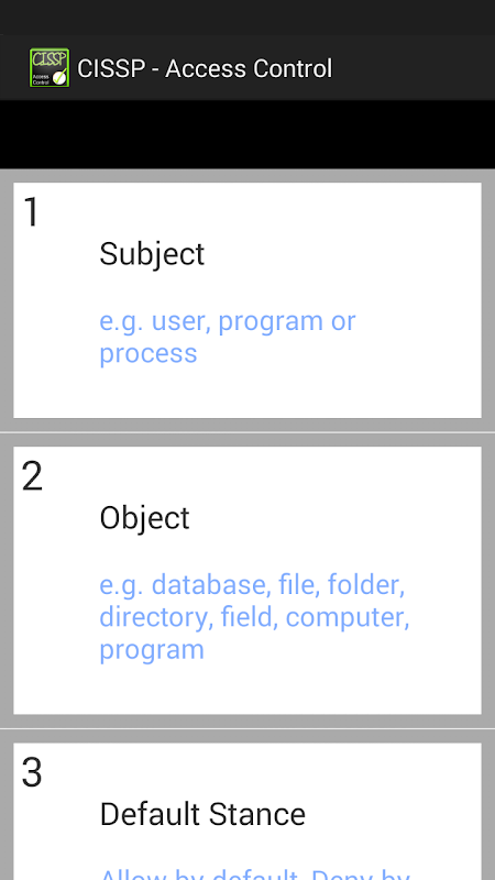 CISSP डोमेन अभिगम नियंत्रण के लिए महान flashcards के उपलब्ध कराने के हल्के अनुप्रयोग!