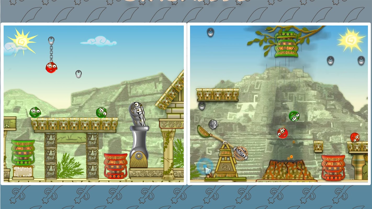 इस भौतिकी-आधारित खेल में आपका उद्देश्य गोलाकार वस्तुओं को उसी रंग के फूलदानों में रोल करना है, और ग्रे गेंदों को वहाँ गिरने से रोकना है। ट्यूटोरियल आपको प्राचीन रोम में ले जाता है, जहाँ मंदिरों और मूर्तियों की पृष्ठभूमि पर एम्फ़ोरा और तोपें स्थापित हैं। गेमप्ले की मूल बातें पूरी करने के बाद, आप पूरे नक्शे में यात्रा करने और यादृच्छिक क्रम में कौशल-आधारित पहेलियाँ पूरी करने के लिए स्वतंत्र हैं। बर्फ से घिरे नॉर्डिक तटों की यात्रा करें और गुलेल से गोली चलाएँ। इंका पिरामिड में पहेलियाँ सुलझाने के लिए जंगलों में जाएँ। इसे हासिल करने के लिए पहियों और कोग, जंजीरों और रस्सियों, झूलों और चलते हुए प्लेटफ़ॉर्म का उपयोग करना सीखें। स्पॉइलर: रोम के मार्बल बिल्कुल वैसे ही दिखते हैं, जैसे वाइकिंग युग की जमी हुई गेंदें। लेकिन इसके अलावा आप सेटिंग बदलते समय कुछ आइटम संशोधनों का आनंद ले सकते हैं।