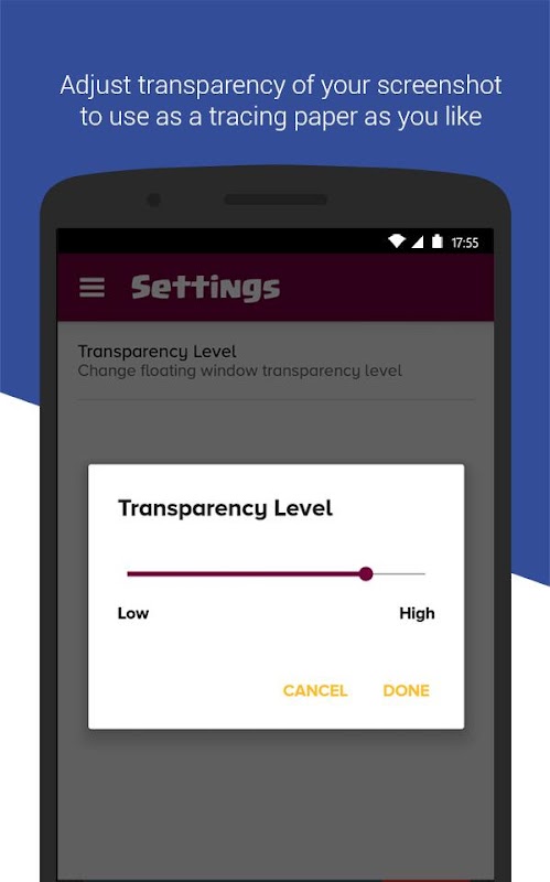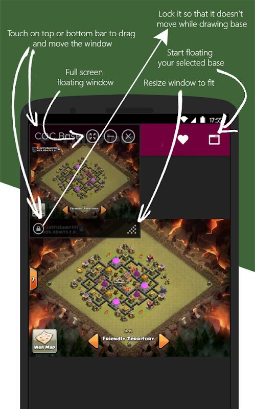 Now you can easily copy any base layout design you like. Just take a screenshot of that base, and then Select that screenshot from our App. The base layout will be floating over the screen. You can then go to Clash of Clans Layout designer and use the floating screenshot as a tracing paper!