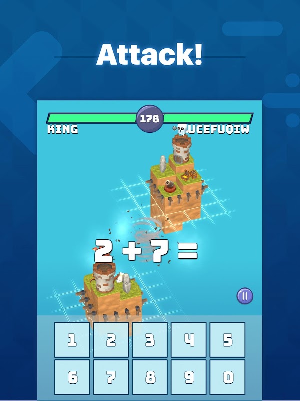 Who says learning math has to be boring? Learn math and become the fastest problem solver to bring down your opponent's kingdom! The faster you solve the problem, the faster you'll attack!