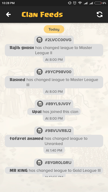 - Clan Feed: who's leaving and who is joining, promotions, or any other change