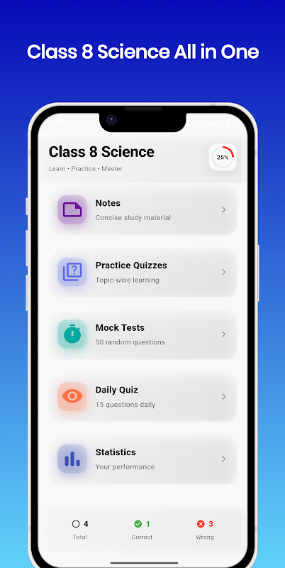 यह ऐप सीबीएसई कक्षा 8 एनसीईआरटी विज्ञान पुस्तक के सभी 18 अध्यायों को कवर करता है। प्रत्येक अध्याय में आवश्यक अवधारणाओं, परिभाषाओं और सूत्रों पर ध्यान केंद्रित किया गया है, जिन्हें व्यवस्थित और छात्र-अनुकूल प्रारूप में प्रस्तुत किया गया है।