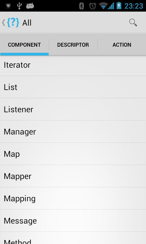 एप्लिकेशन घटकों, वर्णनकर्ता और कार्यों के आधार पर समूहीकृत शब्द हैं. प्रयोक्ता भी चयनित श्रेणी के लिए रैंडम क्लास नाम उत्पन्न कर सकते हैं.