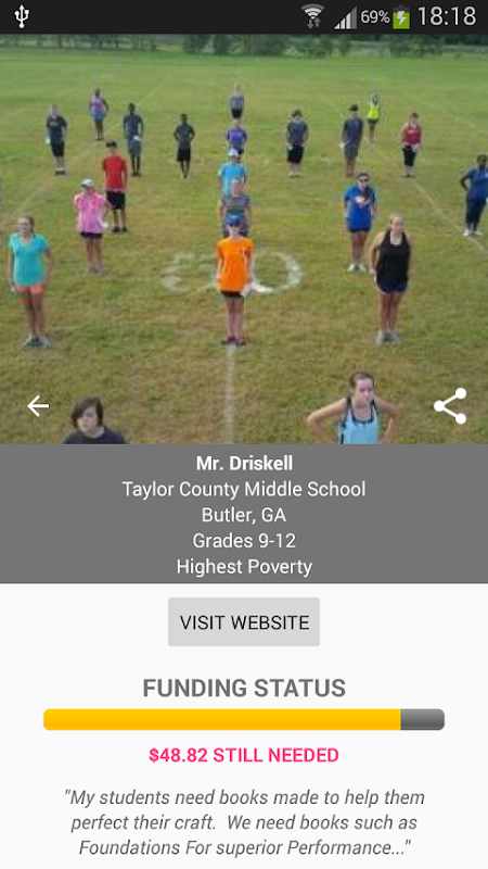 This app uses the API from DonorsChoose.org to showcase a list of classroom projects that need financial assistance. These projects are proposed by K-12 teachers in the US. Features of the app include: