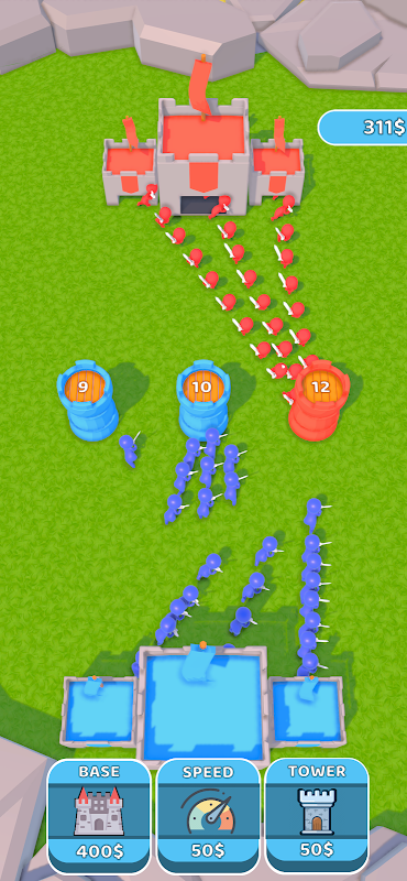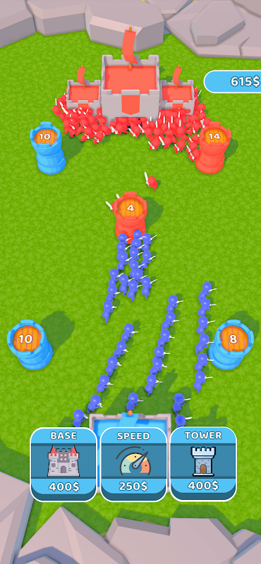 सैन्य उत्पादन में तेजी लाने और सभी टावरों पर कब्जा करने के लिए क्लिक करें।