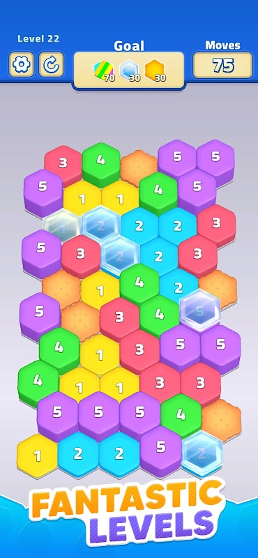 क्लिक अप हेक्सा स्टैक आपको एक जीवंत और रोमांचक पहेली साहसिक कार्य में आमंत्रित करता है जहां समान स्तर की हेक्सा टाइलों को मर्ज करने से उन्हें अपग्रेड किया जाता है और विस्फोटक प्रतिक्रियाओं को ट्रिगर किया जाता है. एक ही स्तर की सभी जुड़ी हुई टाइलों को मर्ज करने के लिए एक टाइल पर टैप करें, उन्हें अगले स्तर तक ले जाएं. जब 10 या अधिक टाइलें समान स्तर पर पहुंचती हैं, तो वे ढेर हो जाती हैं और एक शक्तिशाली विस्फोट करती हैं. आपका मिशन सभी लक्ष्य टाइलों को स्मार्ट रणनीति के साथ अपग्रेड और ब्लास्ट करके साफ़ करना है.
