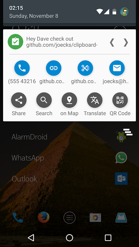 क्लिपबोर्ड क्रियाएँ आपके कॉपी किए गए पाठ के आधार पर कार्रवाइयां करती हैं, जो उन्हें अधिसूचना या ऐप में एक अच्छी सूची में स्थिति पट्टी में दिखाती है, जहां आप अपनी क्लिप प्रबंधित कर सकते हैं।