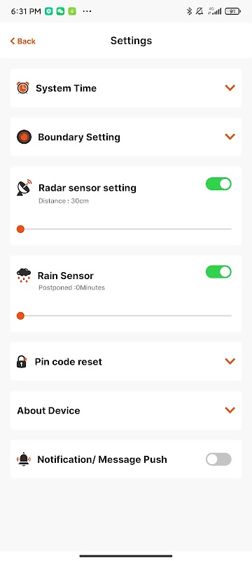 - अपने रोबोट लॉनमूवर के काम के समय और तारीख के कॉन्फ़िगरेशन को जांचें और सेट करें