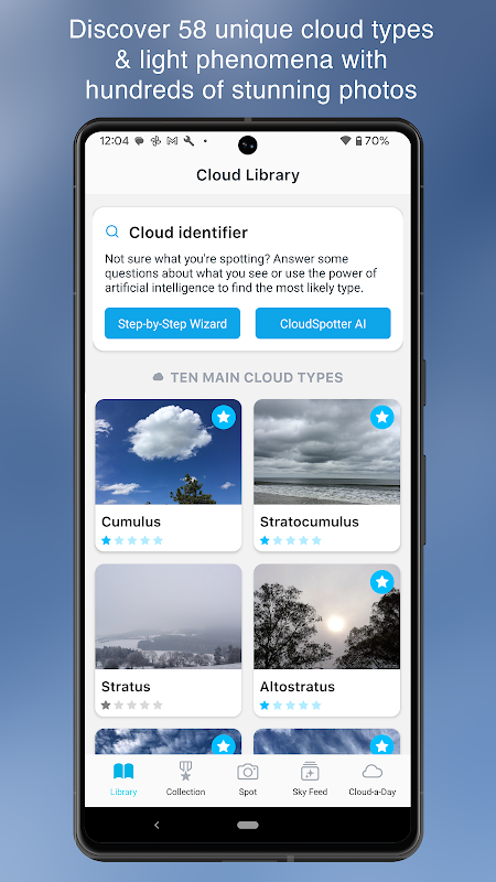 • Cloud and optical effect pages in the Library now show your own Spottings, with one-tap access to all related images in your Collection.