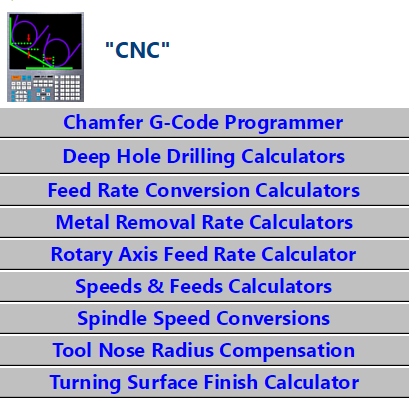Web Machinist Mobile Pro® has many calculators for CNC Machinists, Programmers and QC Inspectors. Including Calculators for Angles, CNC Applications, Simple Lathe Cam CNC Lathe Tool Nose Compensation G-Code Calculators, Chamfer G-Code Calculators, Metric Conversions, Countersink Depth Calculators, Center Drill Depth Calculators, General Conversions, CNC Drilling, CNC Mill & Lathe Deep Hole Drilling calculators, Blueprint Symbols, G Codes, M Codes, Machining Formulas and calculators, Spindle speed and feed rate formulas and calculators, circle solving formulas, Hole Patterns, Hole Array Patters including full circle and partial circle patterns, 3 Wire Threads Pitch Diameter Measuring Calculators for Unified Threads, Metric Threads, Acme Threads and Metric Trapezoidal Threads, CNC Lathe Tool Nose Radius compensation calculators, QC Inspection, Manual Machining, Metal Removal Rates, CNC Milling, Reference, Rotary Axis, Speeds & Feeds, Imperial and Module Spur Gear Dimensions Calculators, CNC Tapping, CNC Threading, Manual Lathe Calculators, Unified Threads, Metric Threads, Acme Threads, Metric Trapezoidal Threads, Spur Gears, Module Spur Gears, Imperial Spur Gears, Area Calculators, Triangles, Circle Calculators, Mill Machine Tooling, Collets dimensions, Keyseat Cutters Calculators, Trigonometry Calculators, Hole Pattern Calculators, Wheel Bolt Pattern Calculators, Manual Mill Calculators, Tooling & Hardware, Sine Bar and Compound Sine Plate calculators, Trigonometry & Geometry, Shop Math Calculators, Lathe Spindle Speed Calculators, CNC Tapping Speeds Calculators, Drilling Speeds Calculators, Tapping Speeds Calculators, CNC Turning and Miscellaneous Calculators. This is a Must Have APP for Machinists, CNC Machinists, Machine Shops, QC Inspectors, CNC Set-up Operators, CNC Programmers.