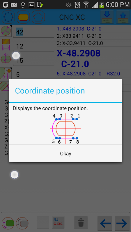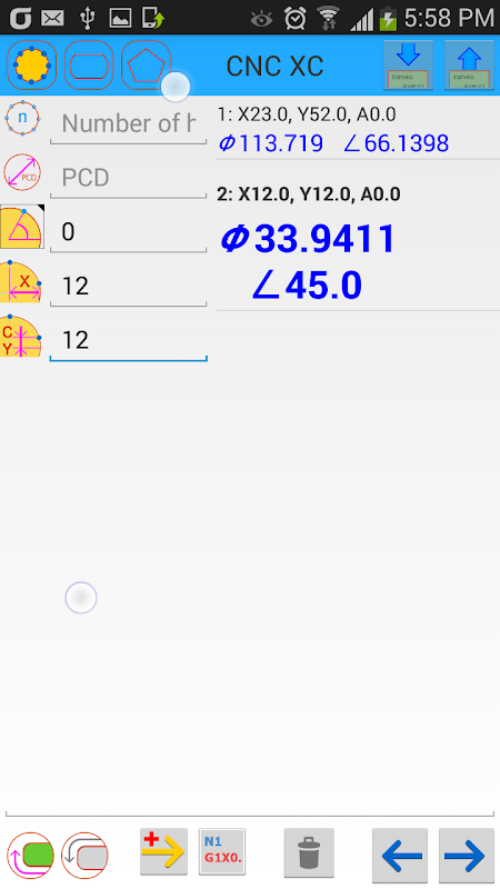 - यह छेद के लिए X-अक्ष और C-अक्ष के निर्देशांक की गणना करता है.