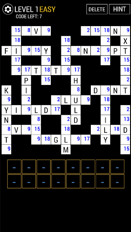 So, your task is to figure out and replace a letter for a code accordingly; letters are suggested at the bottom and limited in 8 letters.