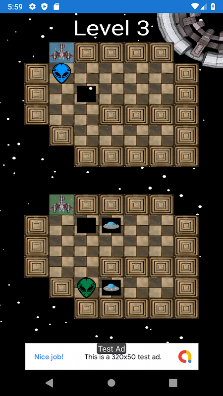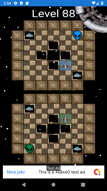 Your aim is to take both aliens to their space ships simultaneously, which is the only way they could exit from destructed meteoroid.