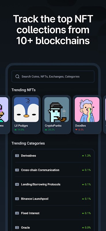 अपने क्रिप्टो पोर्टफोलियो, बिटकॉइन, कॉइन आँकड़े, NFT और क्रिप्टोकरेंसी समाचारों को ट्रैक करें