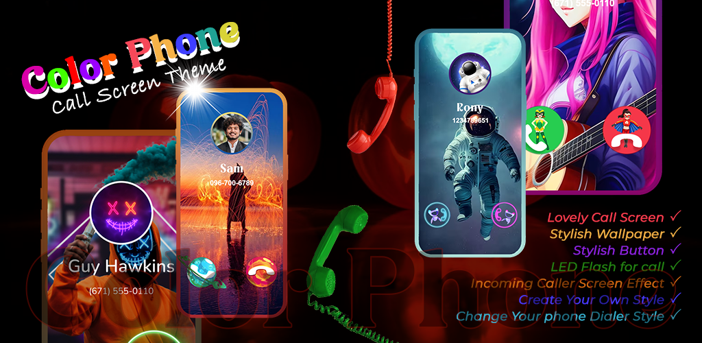 Color Phone Call Screen Theme App is a personalized call screen for incoming calls with a color phone screen. Make your call theme unique with a color call theme, live wallpapers, cool call flash effects, and ringtone,...