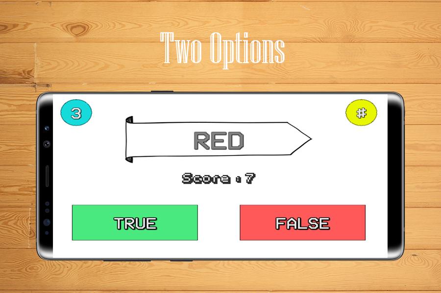 रंग खेल है कि मुश्किल नहीं थे। वहाँ सवाल का जवाब देने केवल 5 सेकंड है। यह सच है और झूठी से मार्क से एक। उच्चतम स्कोर बनाने की कोशिश करें। आपका समय अच्छा गुजरे!