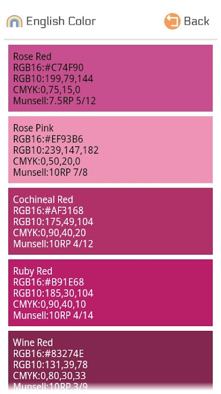 .Color is an color swatches application. Recording the 140 color for WEB design and 267 color of JIS Z 8102:2001. You can compare the compatibility of all colors in between the colors. In addition, you can compare the compatibility with each other all the colors of background and text colors.This application has a paid version(.Color) and free version(.ColorFree), Free version(.ColorFree) will appear ad in the screen.