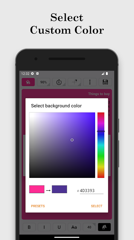 ✓ कस्टम बैकग्राउंड - रंगों की एक विस्तृत श्रृंखला में से चुनें और पारदर्शिता को 0% से 100% तक समायोजित करें।