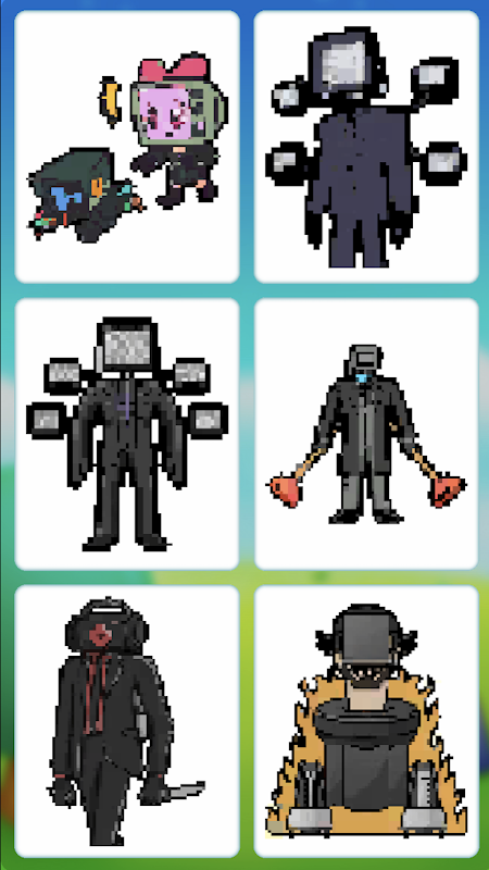 स्किबिडी टॉयलेट और कैमरामैन को रंगना - पिक्सेल कला और रंग भरने वाली किताब