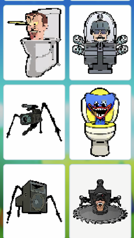 2. एक बहुत ही सरल रंग प्रक्रिया। स्किबिडी टॉयलेट कलरिंग में नंबर एक बहुत ही सरल और समझने योग्य इंटरफ़ेस होता है जो आपको कुछ ही मिनटों में एक चरित्र को रंगने में मदद करेगा। बस इसे कला के एक उज्ज्वल काम में बदलने के लिए संबंधित पिक्सेल को स्पर्श करें।