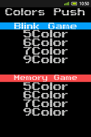 パズルのモードはBlinkgameとMemorygameの2つがあります。