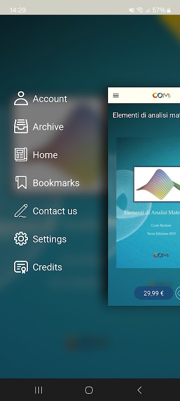 एप्लिकेशन आपको इतालवी, अंग्रेजी और रूसी में COM एडिज़ियोनी कैटलॉग के सबसे प्रमुख प्रकाशनों को ब्राउज़ करने की अनुमति देता है। सबसे उद्धृत: पॉकेट मैनुअल थेरेपी द्वारा प्रो। बार्टोकोनी और अन्य लेखकों जैसे कि आर। मानिनी, सी। विंती, ए। बेसिल, एल। स्ट्रैमासीसिया, एम। वैलेन्टिनी, जी। सैंटी, एस। कास्त्रिकोनी, एमजी पियरोटी, ओ। विन्सेन्जिनी, पी। रायमोंडी, आर। रिकार्ड्डी, ई। बैलाटोरी, बी। रोमानो, आई। गर्गेल्ला, एफ। लोरेंज़ी, ई। फेनिजिया गाल्डो, आदि।
