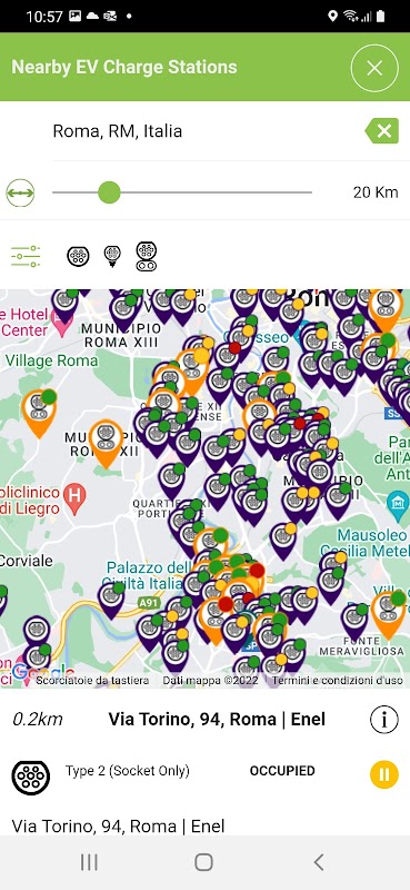 - पास और मार्ग के साथ चार्जिंग पॉइंट इंगित करता है।