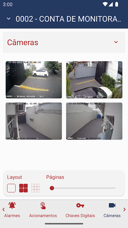 - Exibição das câmeras (DVR) diretamente junto ao acionamento.