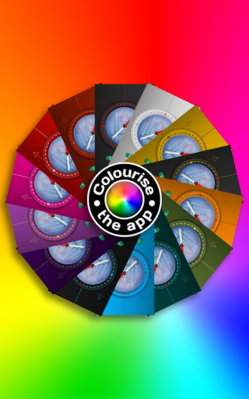 ऐप में पृष्ठभूमि, डायल, चिह्नों और डिजिटल नंबरों के रंग को बदलने की क्षमता शामिल है। आपके पास कोई भी रंग हो सकता है जैसा कि ऐप आपको देता है hue / saturation / dark color स्लाइडर । आपके चयनित रंग को टोन की समृद्ध गहराई प्राप्त करने के लिए स्थानों में मिश्रित किया जाता है।