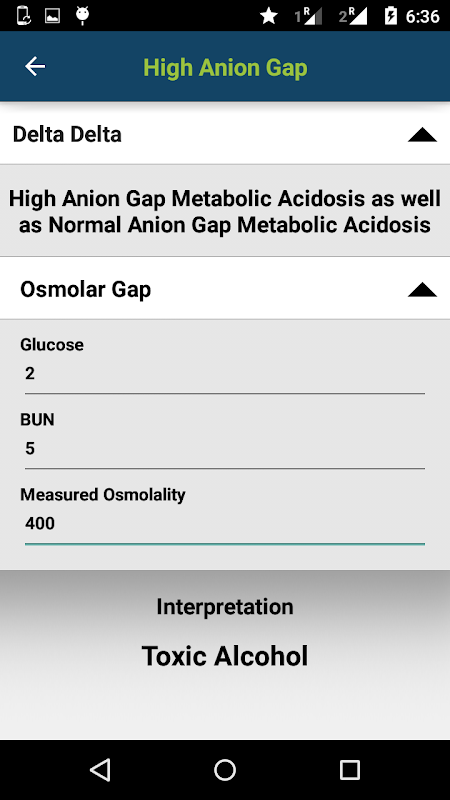 अनियन गैप, डेल्टा डेल्टा गैप, ऑस्मोलर गैप, यूरिनरी अनियन गैप और यूरिनरी पोटेशियम लेवल के आधार पर विस्तारित व्याख्या प्रदान की जाती है।