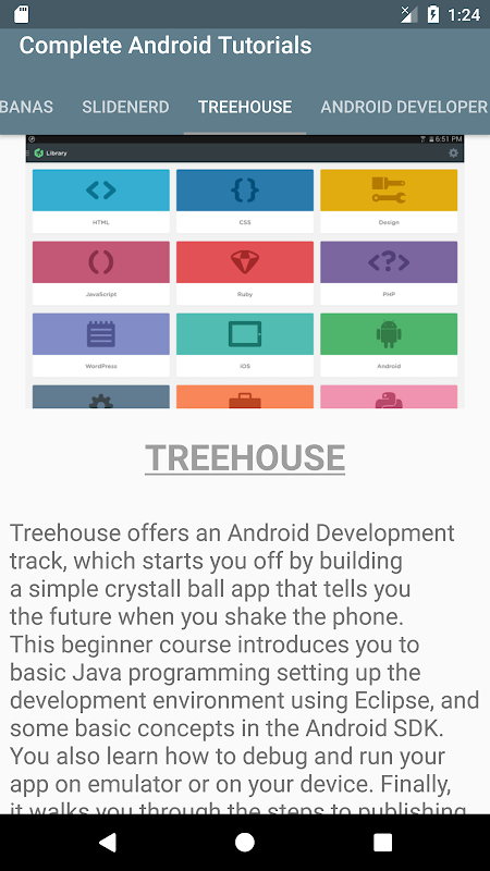 This is one of a kind Android Tutorial app that includes all the basic to advance teachings that is required to learn an android programming.
