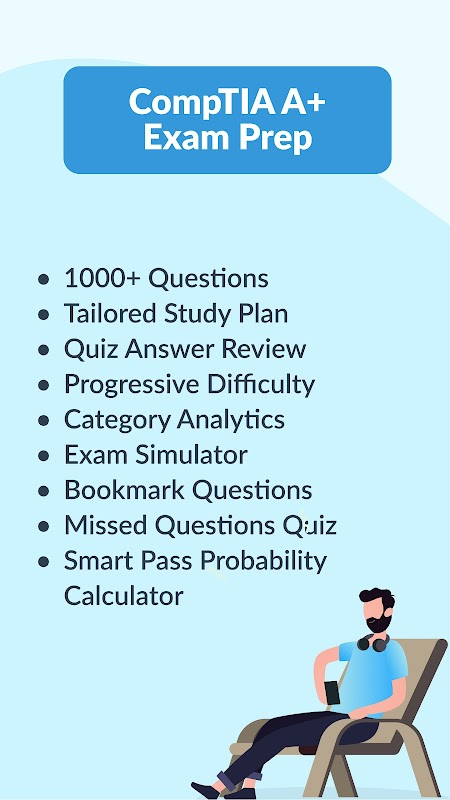 उत्तीर्ण अंक सुनिश्चित करने के लिए अभ्यास प्रश्नों, अध्ययन सामग्री और एक परीक्षा सिम्युलेटर के साथ CompTIA A+ परीक्षा की तैयारी करें।