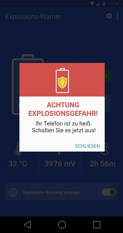 विश्वसनीयता और अपने स्मार्टफोन बैटरी की सुरक्षा के मौजूदा ऑपरेटिंग तापमान पर अन्य बातों के साथ निर्भर करता है। द्वारा Computerbild फट वार्नर आप स्मार्टफोन बैटरी की वर्तमान तापमान हालत को ध्यान में हमेशा होता है।