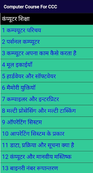 Computer Course for CCC offline Computer Course is a free and app in hindi language for computer based exams like CCC, BCC, IBPS, Bank, O Level and other competitive exams. This is the best CCC Exam Practice Application for all candidate who want get good marks in CCC exam.