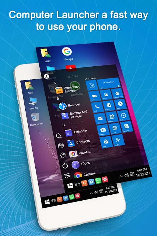 No wait now. windows 10 launcher is here for you. windows 10 launcher Customize your phone with unique look and feel with the fast, clean and energy efficient Launcher. windows 8 computer launcher Surprise your friends with new look of your windows 8 computer launcher Android and also share it with your loved ones.