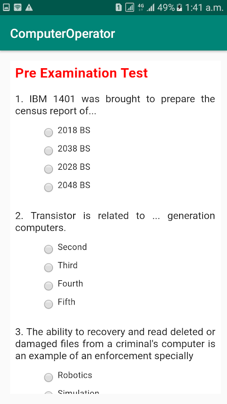 This application contains the Loksewa Computer Operator's syllabus, MCQs (Multiple Choice Questions) and some important hints according to the syllabus. This application also contains the old questions of previous examinations. Here, In this application you will get 400 - 500 VVI MCQs from each subjects. MCQs from the subject Computer Fundamental, Word Processing, Electronic Spreadsheet, Presentation System, Database System, Web Page Design and Operating System are included in this application. The MCQs and hints are very useful for the competitors to study as they are presented in so convenient way. I hope you will find it very useful. seeking for your feedback.