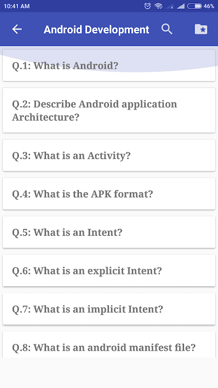 App also contain multiple choice questions (Currently only for Android development and C programming) for quickly testing your knowledge.