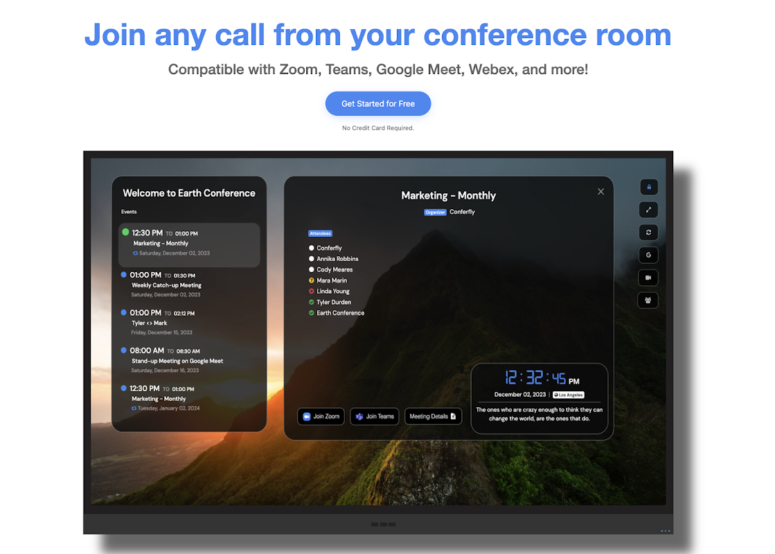 कॉन्फ़्रेंस रूम ऐप जो (Google वर्कस्पेस और Microsoft 365) के साथ एकीकृत होता है।