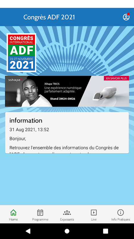 "L’application officielle du Congrès ADF 2021, organisé par l’Association dentaire française du mardi 23 au samedi 27 novembre 2021 au Palais des Congrès de Paris.