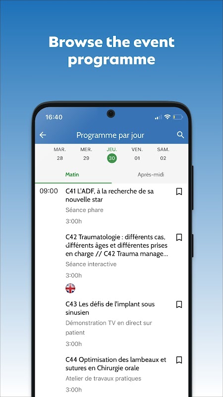 व्यावहारिक जानकारी, सम्मेलन कार्यक्रम, प्रदर्शकों की सूची, प्रदर्शनी हॉल की योजनाएं, अन्तरक्रियाशीलता, वास्तविक समय की जानकारी... अपनी यात्रा को यथासंभव व्यवस्थित करने के लिए पूरी कांग्रेस को अपनी जेब में रखें।