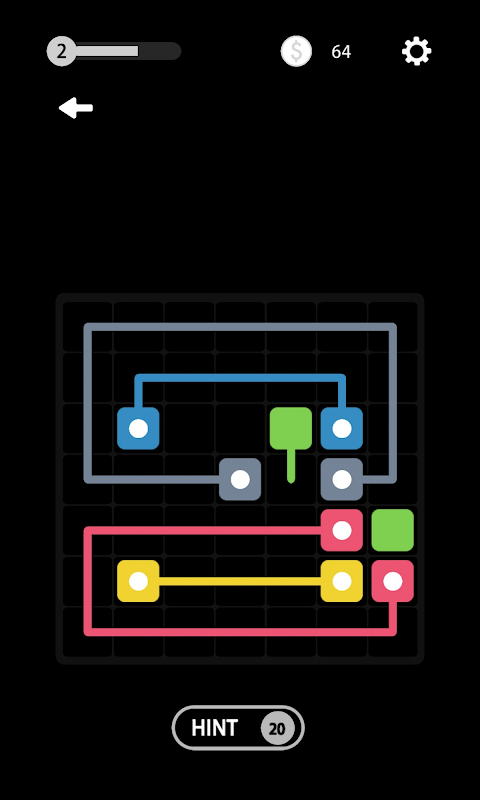 The game presents color link puzzle: each puzzle has a grid of squares with coloured dots occupying some of the squares. The objective is to connect dots of the same colour by drawing 'lines' between them such that the entire grid is occupied by the line. However, pipes should not intersect with each other.