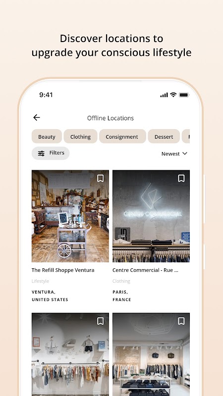विचार बियॉन्ड ऐप आपकी स्थायी जीवन शैली गाइड है जहाँ आप 25+ देशों के 500+ स्थायी सौंदर्य, फैशन, घर और जीवन शैली ब्रांडों की खोज करते हैं।
