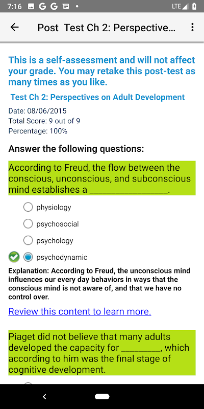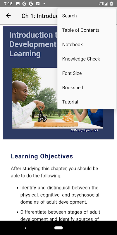 नॉलेज चेक के साथ, आप अपने सीखने के अंतराल की पहचान कर सकते हैं और उन अनुभागों को इंगित कर सकते हैं जिन पर आपको पाठ्यक्रम सामग्री में महारत हासिल करने के लिए ध्यान केंद्रित करने की आवश्यकता है। किसी अध्याय को पढ़ने से पहले, यह निर्धारित करने के लिए एक पूर्व-परीक्षा लें कि आप पहले से क्या जानते हैं। एक बार जब आप अध्याय पढ़ लें, तो अपनी समझ का आकलन करने के लिए एक पोस्ट-टेस्ट लें। जो कुछ आप अभी तक नहीं समझ पाए हैं उसके आधार पर आपको पढ़ने के लिए अनुशंसित अनुभाग मिलेंगे। अध्याय समीक्षा मार्गदर्शिका उस अध्याय के सीखने के परिणामों के विरुद्ध आपकी दक्षता दर्शाती है।