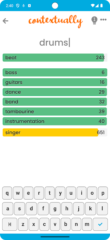 प्रत्येक अनुमान को इस आधार पर क्रमबद्ध किया जाता है कि वह छिपे हुए शब्द के कितना करीब है। संख्या जितनी कम होगी, आप छिपे हुए शब्द - शब्द #1 तक पहुँचने के उतने ही करीब होंगे।