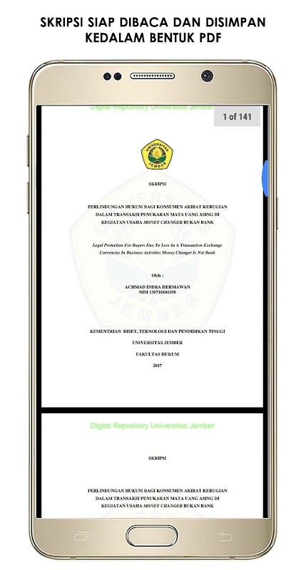 Aplikasi ini berisi 100 judul skripsi hukum lengkap mulai pendahuluan sampai penutup. Skripsi berupa file pdf yang bisa didownload.