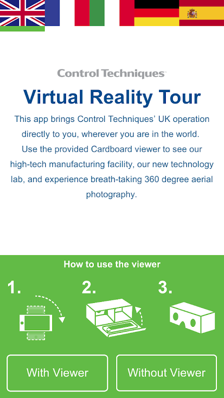 This VR tour of Control Techniques' manufacturing facility in the UK & Romania allows you to experience breath-taking aerial views of the stunning Mid Wales countryside, and take a virtual tour around Control Techniques innovative manufacturing and engineering facilities. Now includes a tour of Nidec's groundbreaking new facility in Oradea, Romania.